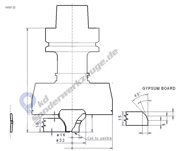 Spachtelnutfräser mit zwei Winkel (HSK20C) D16 / D32 für 15 mm Gipskartonplatten
